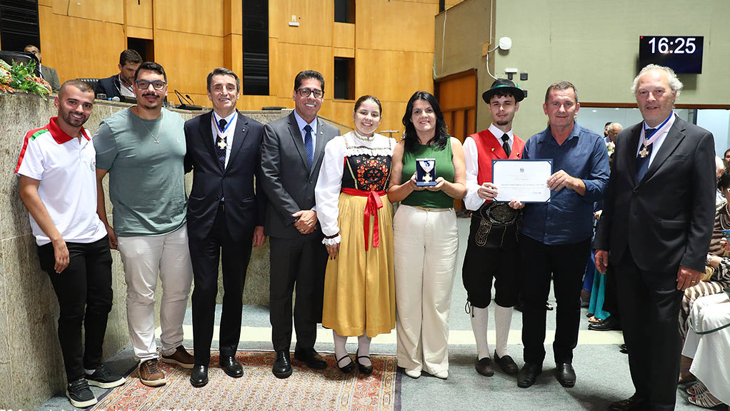 Na ocasião, foi entregue a Comenda Gerson Camata, honraria criada pela Resolução nº 03/2024. O título presta tributo a Gerson Camata, capixaba descendente de imigrantes italianos, ex-governador do Espírito Santo, ex-senador da República e ex-deputado estadual. A comenda foi concedida a personalidades e entidades que se destacam na preservação e promoção da cultura italiana em diversas áreas, celebrando, também, os 150 anos da imigração italiana no Brasil, cujo marco tem o Espírito Santo como um de seus principais pontos de origem.