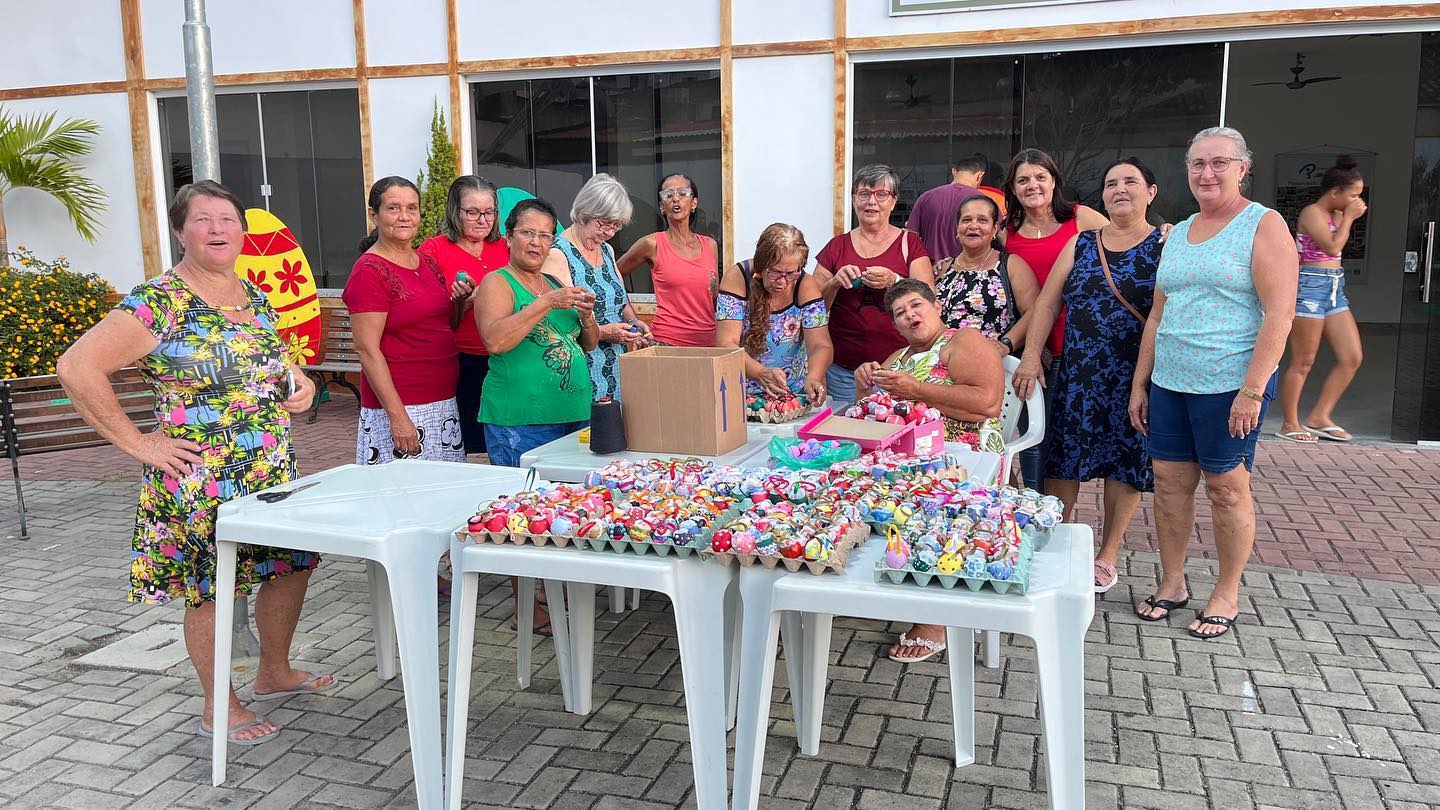 Esse ano, a Osterbaum na praça foi adotada pelo grupo Reviver, da melhor idade de Vila Pavão. O grupo se dedicou à decoração das casquinhas de ovos e na montagem da árvore que aconteceu na noite do dia 24.